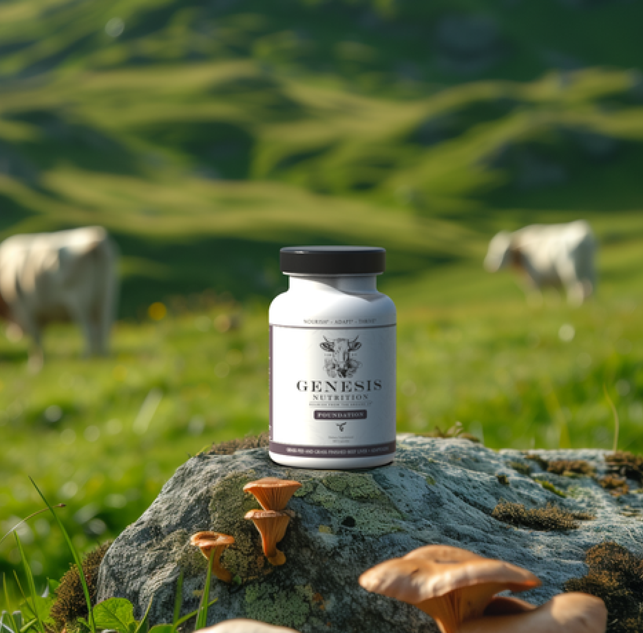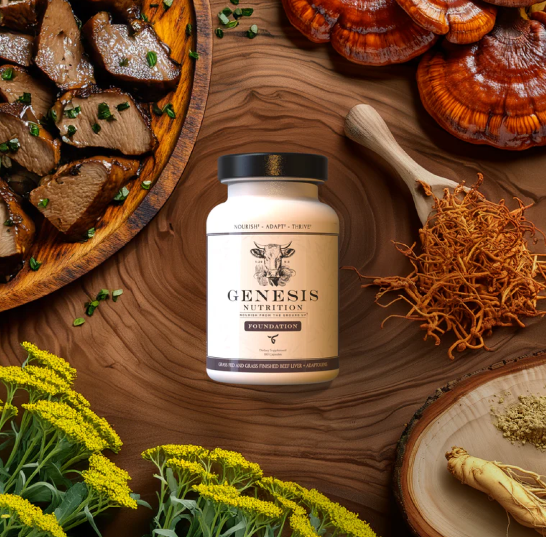 Genesis Nutrition brings together the best of two worlds, the plant and animal kingdom. The nutrient density of beef liver and the adaptogenic benefits of Reishi, Cordyceps, Ginseng, and Rhodiola. Beef liver is already one of nature's most powerful sources of essential vitamins and minerals, but combining it with adaptogens takes it a step further. The key to our formula is beef liver's nutrient-density, amplifying the effectiveness of adaptogens and their therapeutic compounds in balancing the body's hormonal, immune, and nervous systems. This means more energy, enhanced resilience, sharper focus, and greater stamina—fueled by nature's most potent ingredients.